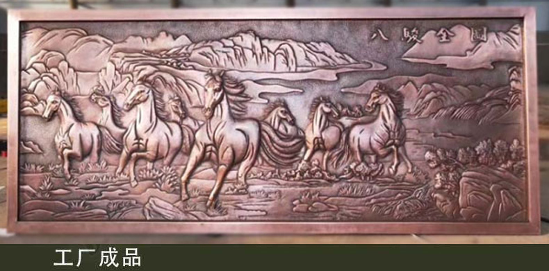 銅浮雕是浮雕藝術的一種,設計好圖案后,按照一定的工藝流程,以特制的工具和特定的技法,在金屬板上加工出千變萬化的浮雕狀圖案。